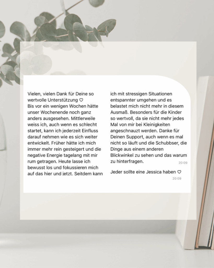Ich begleite dich dabei, aus dem Funktionsmodus auszusteigen und wieder in Kontakt mit dir zu kommen – damit du nicht nur als Mama, sondern auch als Frau wieder strahlst.